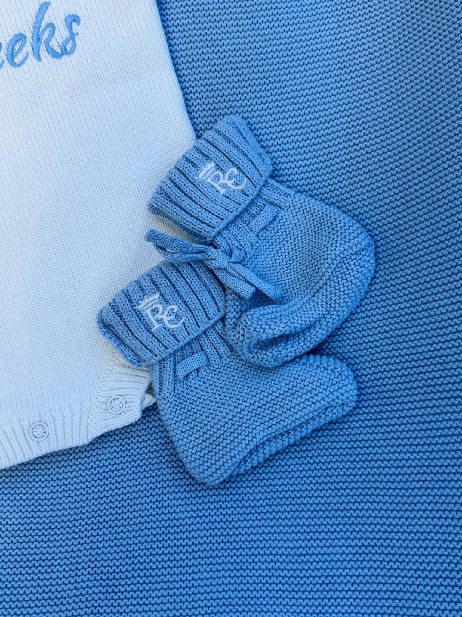 The calm Sky Blue shade brings a classic, soothing look, perfect for everyday wear or special first moments.